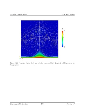 TransAT Tutorial Manual 4.4. Film Boiling Figure 4.23: Interface (white line) and velocity vectors of fully detached bubble, colored by Temperature. c Ascomp AG Switzerland 170 Version 5.7