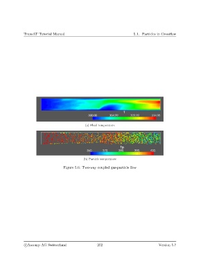 TransAT Tutorial Manual 5.1. Particles in Crossflow (a) Fluid temperature (b) Particle temperature Figure 5.6: Two-way coupled gas-particle flow c Ascomp AG Switzerland 202 Version 5.7