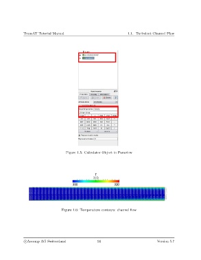TransAT Tutorial Manual 1.1. Turbulent Channel Flow Figure 1.5: Calculator Object in Paraview Figure 1.6: Temperature contours: channel flow c Ascomp AG Switzerland 14 Version 5.7