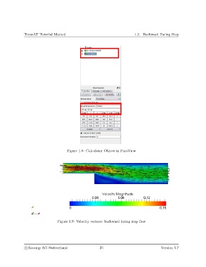 TransAT Tutorial Manual 1.2. Backward Facing Step Figure 1.8: Calculator Object in ParaView Figure 1.9: Velocity vectors: backward facing step flow c Ascomp AG Switzerland 25 Version 5.7