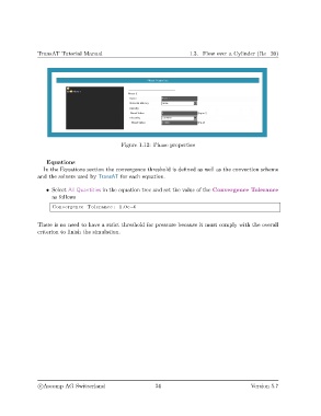 In the Equations section the convergence threshold is defined as well as the convection scheme