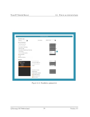 TransAT Tutorial Manual 2.3. Flow in an obstructed pipe Figure 2.11: Simulation parameters c Ascomp AG Switzerland 79 Version 5.7