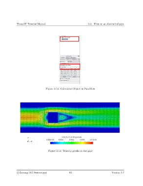 TransAT Tutorial Manual 2.3. Flow in an obstructed pipe Figure 2.12: Calculator Object in ParaView Figure 2.13: Velocity profile in the pipe c Ascomp AG Switzerland 83 Version 5.7